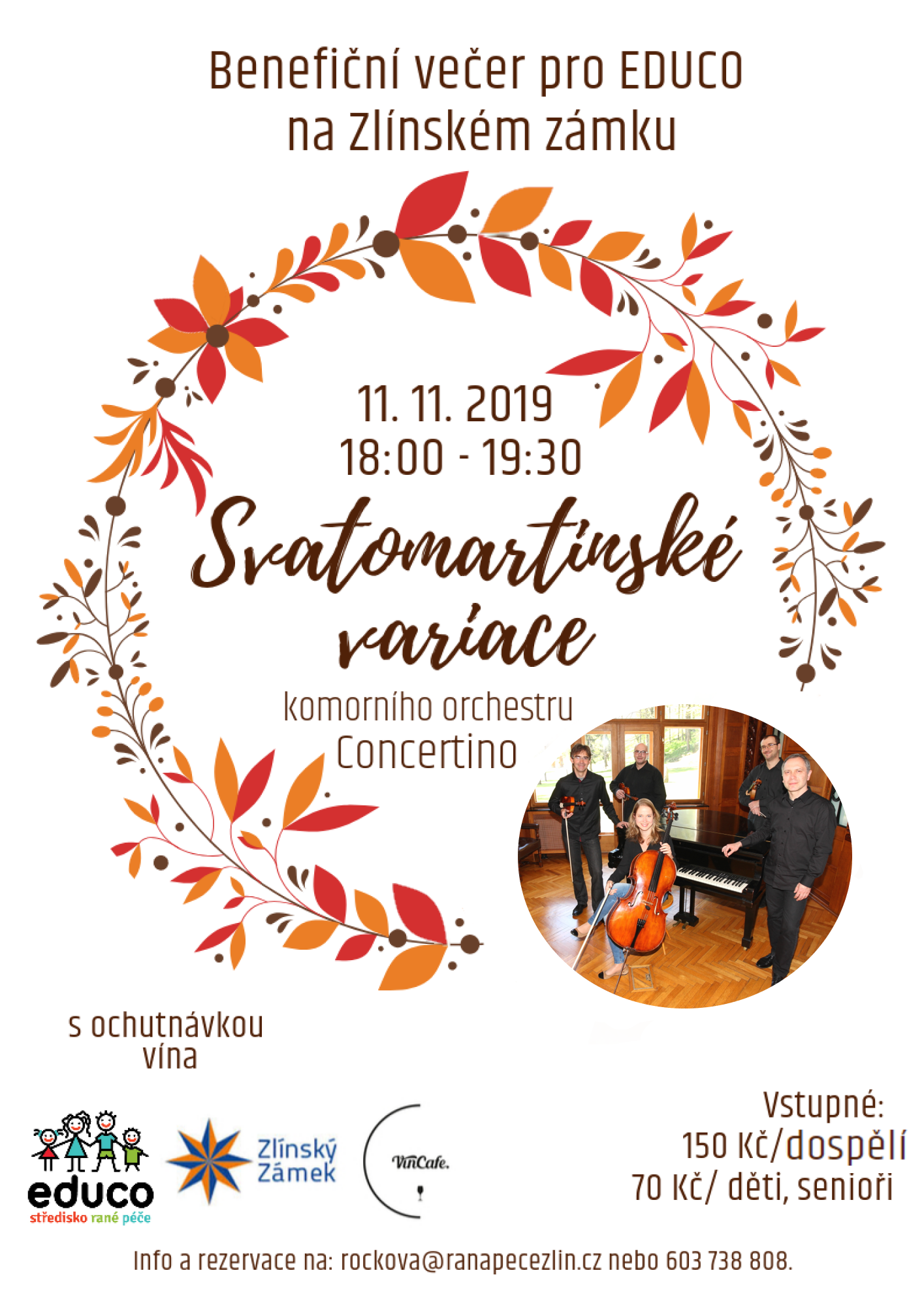 Dovolte nám Vás srdečně pozvat na benefiční koncert, který pořádáme ve spolupráci se Zlínským zámkem k příležitosti oslav sv. Martina, koná se v pondělí 11. 11. 2019 od 18:00.